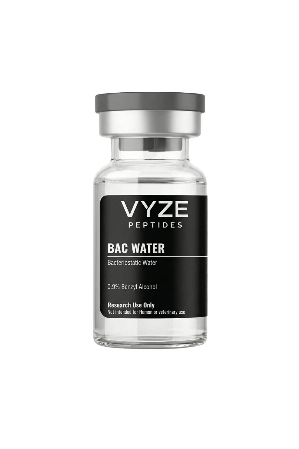 For Laboratory/Research Use Only: Bacteriostatic water is a sterile, non-pyrogenic, multi-dose preparation of water for injection, containing 0.9% (9 mg/mL) benzyl alcohol, designed primarily to reconstitute, dilute, or dissolve laboratory reagents, peptides, and pharmaceutical compounds while inhibiting bacterial growth over a 28-day period.